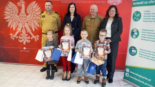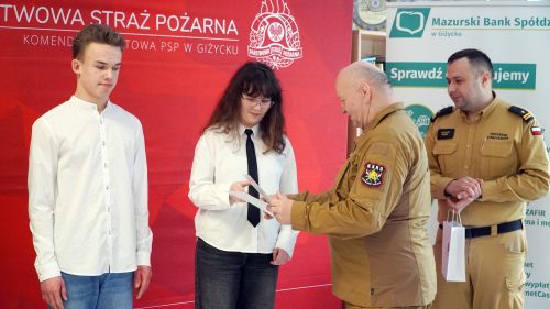 Nagrody wręczali - Komendant Powiatowy PSP w Giżycku mł. bryg. mgr inż. Mateusz Pupek, Wiceprezes Zarządu Oddziału Powiatowego ZOSP RP druh Krzysztof Banaszkiewicz, Zastępca Prezesa Zarządu MBS w Giżycku Izabela Bronakowska oraz w imieniu Burmistrza Giżycka, Dyrektor Biura Burmistrza Beata Górczyńska.